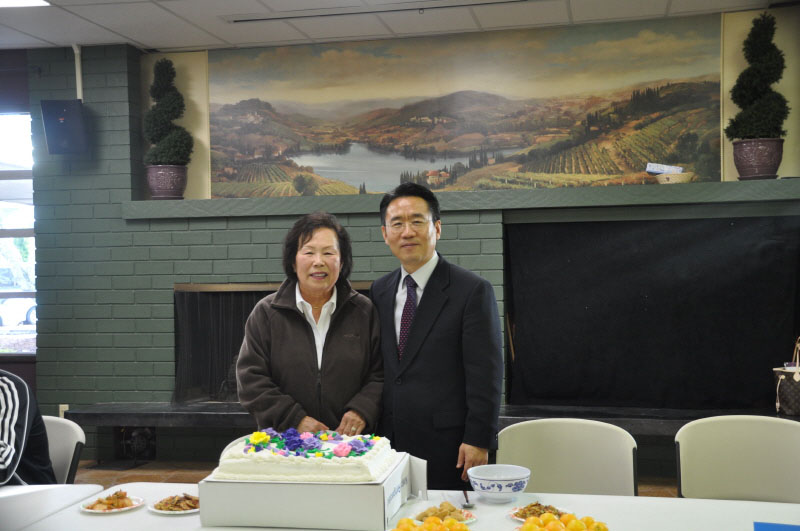 축하케익 앞에서 목사님과 함께..